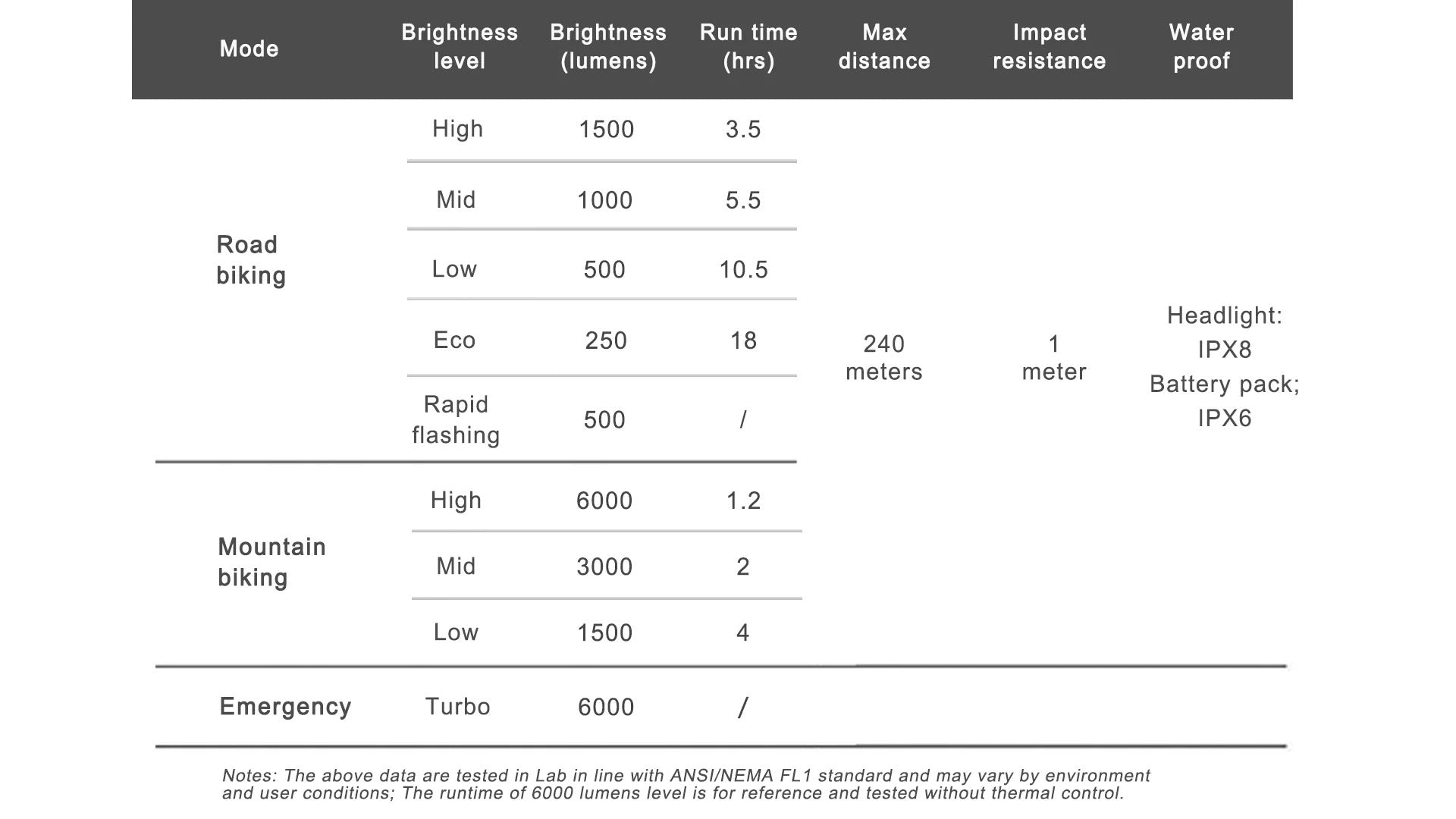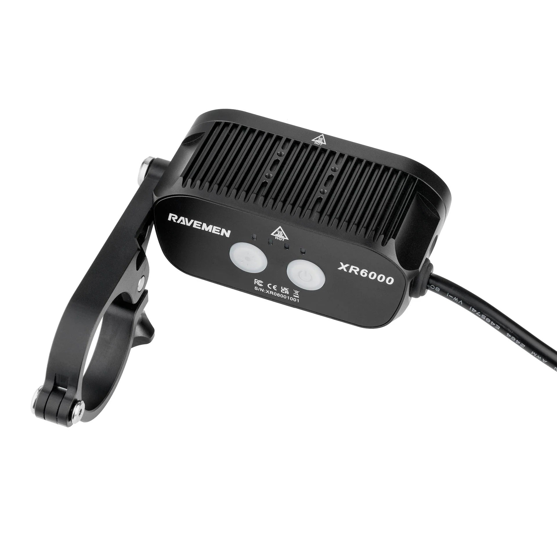 Construit en aluminium robuste avec dissipateurs thermiques, le XR6000 résiste à la pluie, aux chocs et aux longues sessions d’éclairage grâce à sa gestion thermique intelligente. Le support guidon en aluminium anodisé garantit une fixation solide et compatible avec les guidons modernes en 31,8 mm et 35 mm.