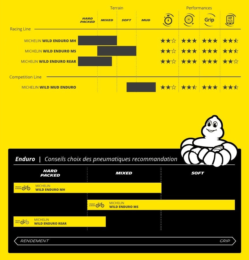 A proteção contra os furos e as pancadas foi especialmente desenvolvida para responder às necessidades dos pilotos da Taça do Mundo de Enduro. Com o pneu MICHELIN WILD ENDURO MH Racing Line, você estará equipado para corresponder às suas ambições e dominar as pistas com confiança.