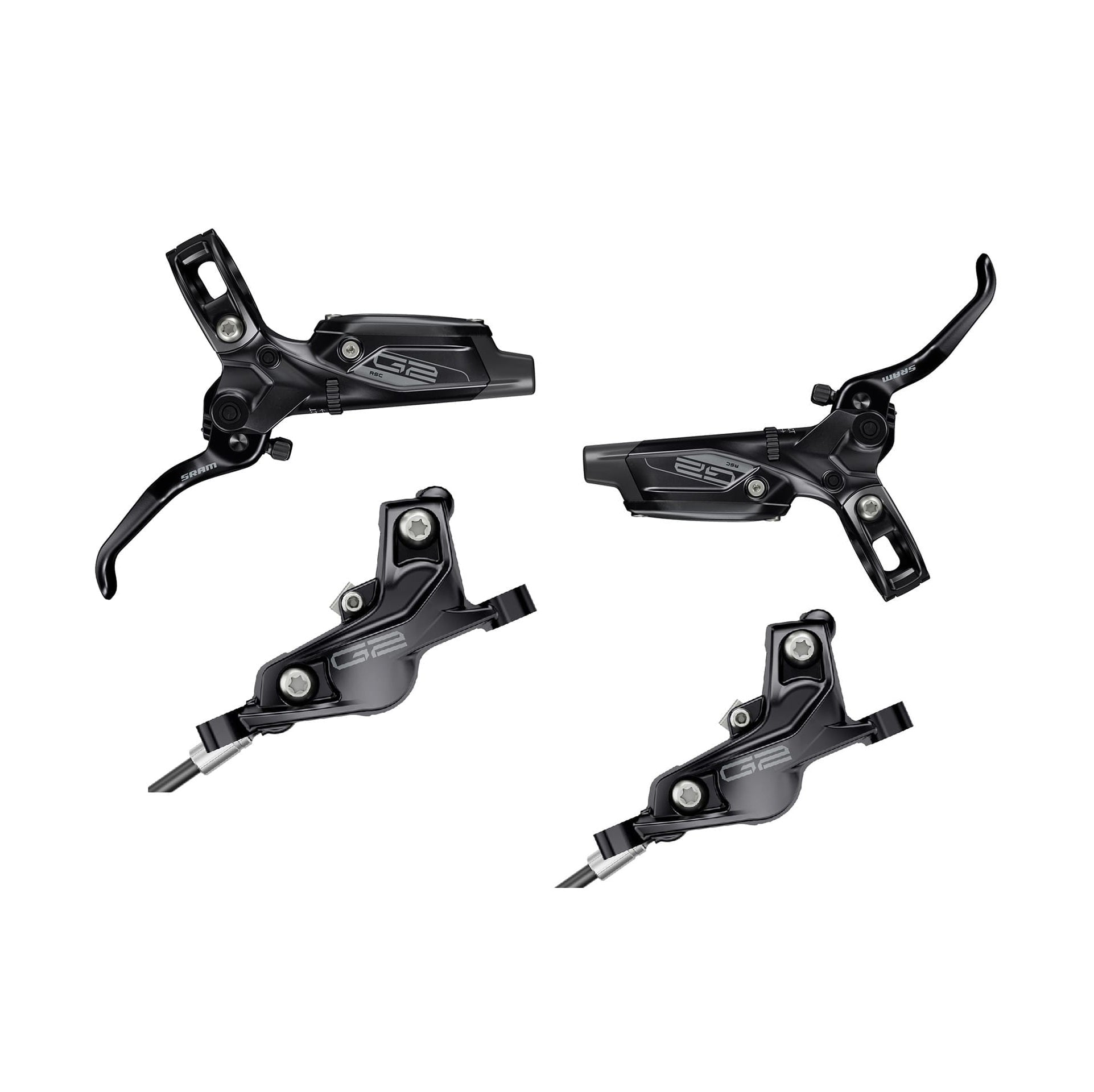 Preto Par de travões SRAM G2 RSC combina na perfeição as caraterísticas do SRAM Code RSC e do Guide RSC. O G2 oferece um aumento significativo de potência e uma excelente modularidade na travagem, tornando-o particularmente adequado para o BTT. Trilho e Enduro.