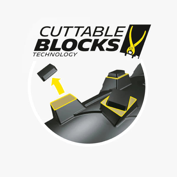A tecnologia MICHELIN Cuttable Blocks permite recortar os pneus para melhorar a aderência. Isto requer uma definição clara da altura a recortar e a capacidade de o fazer de forma idêntica em todo o pneu sem degradar o seu desempenho. MICHELIN concebeu e patenteou uma nova geração de banda de rodagem que facilita e garante ao piloto um recorte perfeito em todo o pneu, poupando assim um tempo considerável.