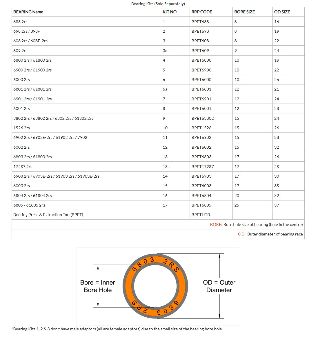 RRP 9 Kit - 3802 2rs/63802 2rs/6802 2rs/61802 2rs