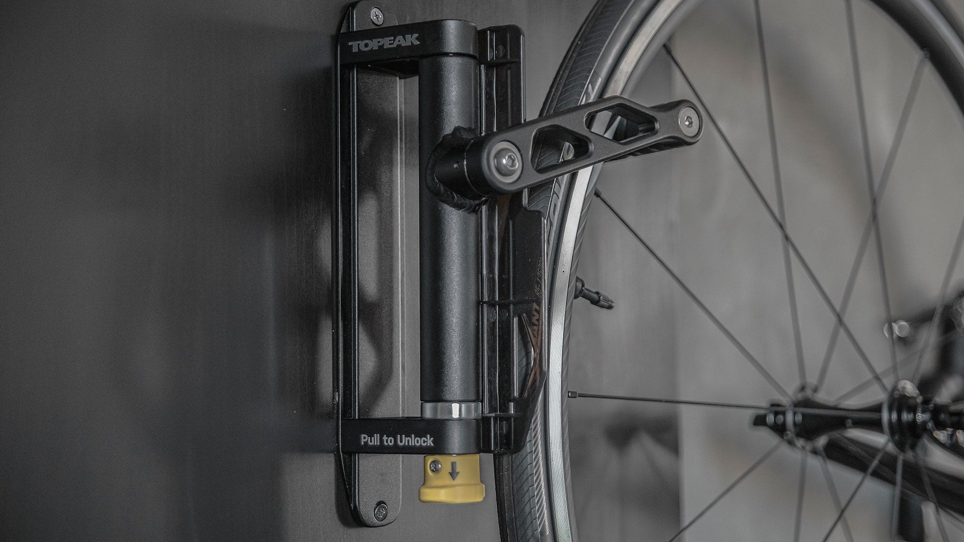Support de Roue Arrière Inclus : Une petite cale murale est fournie pour éviter que la roue arrière ne salisse ou ne marque votre mur.